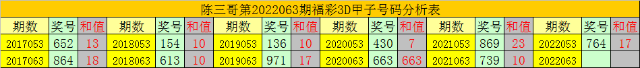 则,第2022063期奖号可以参考第2022053期奖号:764。