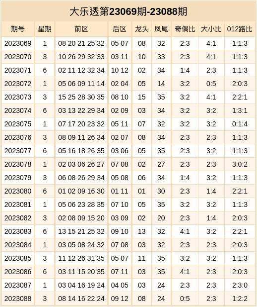 上期开出奇偶比0:5,近期偶数号码持续走强,经过分组统计我们可以发现,近期奇偶比分别开出4次2:3、2次3:2、2次4:1、1次1:4、1次0:5,本期应当关注奇偶比2:3。