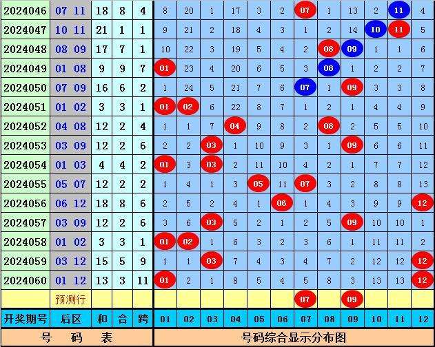 5、后区奖号分析:最近9期后区号码012路比为10:5:3,其中012出现期数分别为:6期,6期和4期,上期后区奖号为01和12本期看好2路走冷,关注号码01、03、07、08、09。