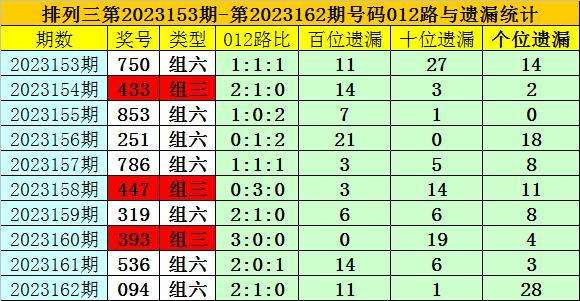 开奖回顾:排列三第2023162期奖号为:094,类型为组六,号码012路比为2:1:0,百十个位号码直选分别遗漏11期、1期和28期。