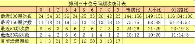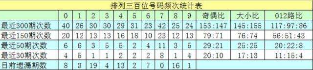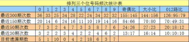 十位号码:前50期走势最活跃的号码为:0开出8个,7开出7个,1、3、4、6开出6个;走势最冷的号码为:5开出2个,2、8、9开出3个。十位号码012路比开出23:19:8,大小比开出21:29。本期十位排除两码:7、9,参考号码0、1、2,胆码关注1。