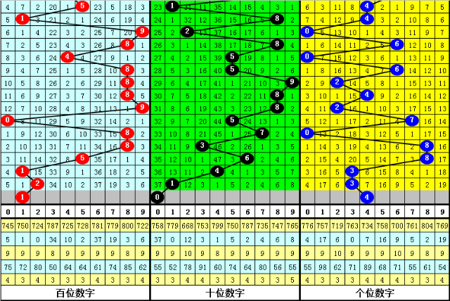 在最近个位奖号中,号码3前7次开出之后,下期分别落号:3、8、9、6、7、8、3,其中奖号012路比为4:1:2,奇偶比为4:3,大小比为5:2。
