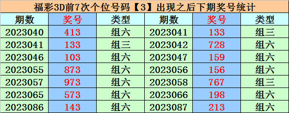 个位分析:上期个位开出奖号3,个位历史上号码3已开出763次,最近100期个位号码开出3次,上期号码为重号。