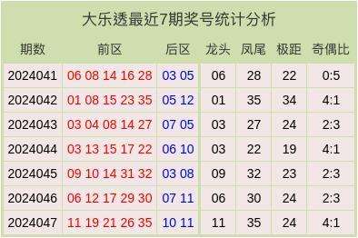 上期大乐透的开奖号码中,首尾组合为11+35,极距为24,奇偶比为4:1。