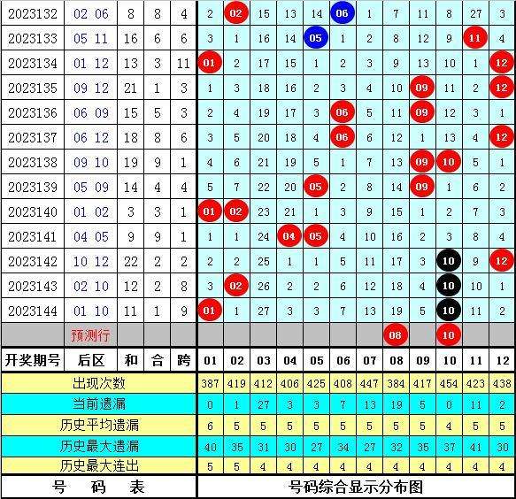 后区号码分析:在前7周星期一开奖中,后区奇偶号码个数比为7:7,奇偶号码走势基本相当,后区大小号码个数比为7:7,大小号码开出个数基本持平,本期后区防全大组合,关注号码07、08、10、12,精选两码08、10。