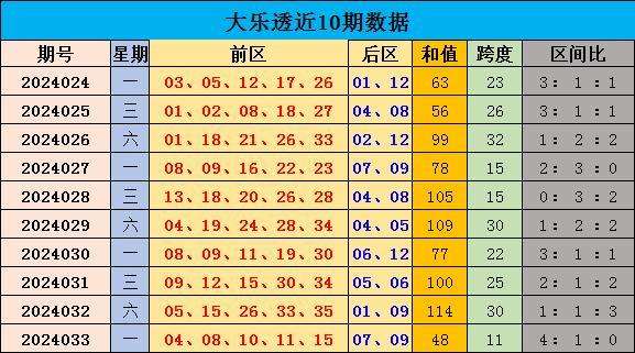 和值分析:上期前区奖号和值48,预计本期和值将会上升,参考和值将会开在72左右。