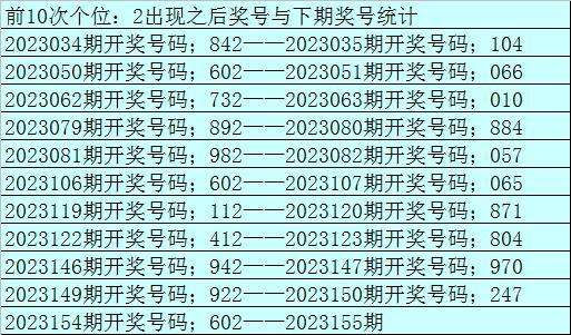 上期回顾:福利彩票3D第2023154期开奖结果:奖号为602,奖号和值为:8,奖号跨度为:6,奇偶形态为:偶偶偶,大小形态为:大小小。