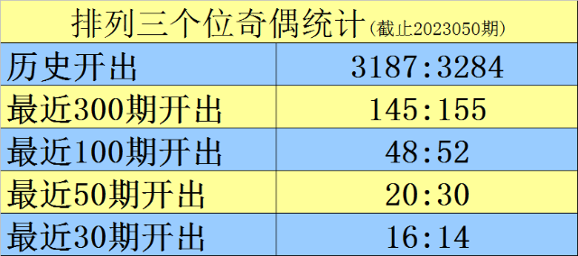 上期回顾:排列三2023050期奖号为714,类型为组六,奇偶比为2:1,大小比为1:2,和值为12。