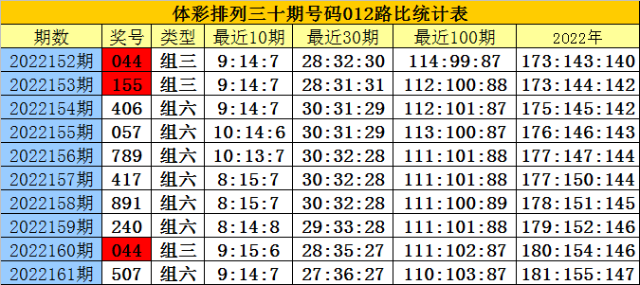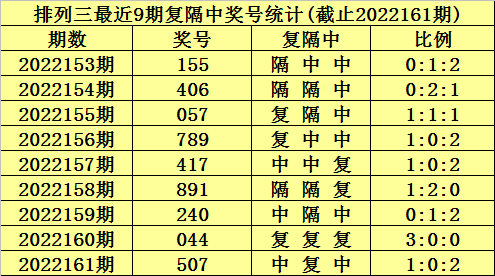 开奖回顾:排列三第2022161期奖号为:507,号码012路比为1:1:1。