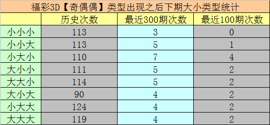 二、最近7次【大大小】奖号之后,其下期分别开出号码:528、472、664、500、225、573、053,其中组三号码出现3次,组六号码出现4次。本期预计开出组六号码。
