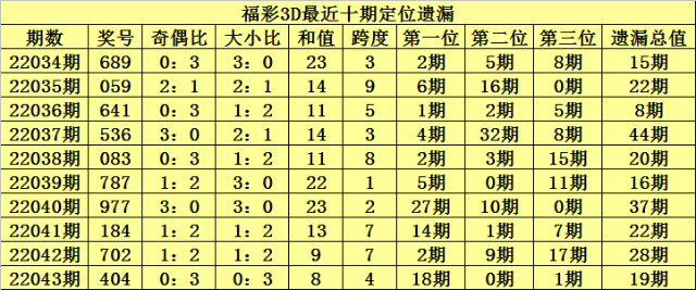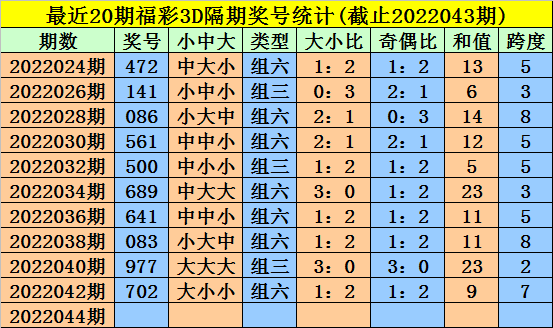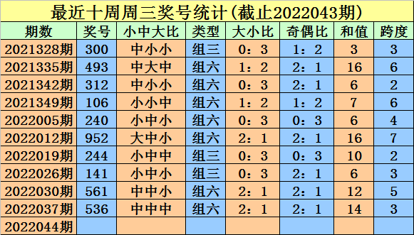 044期金心福彩3D预测奖号:奖号类型判断