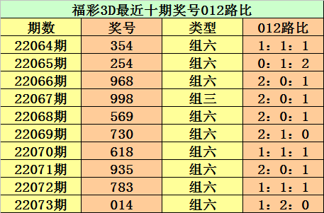 3。福彩3D第22073期10个遗漏最大的五码组六开出3个。