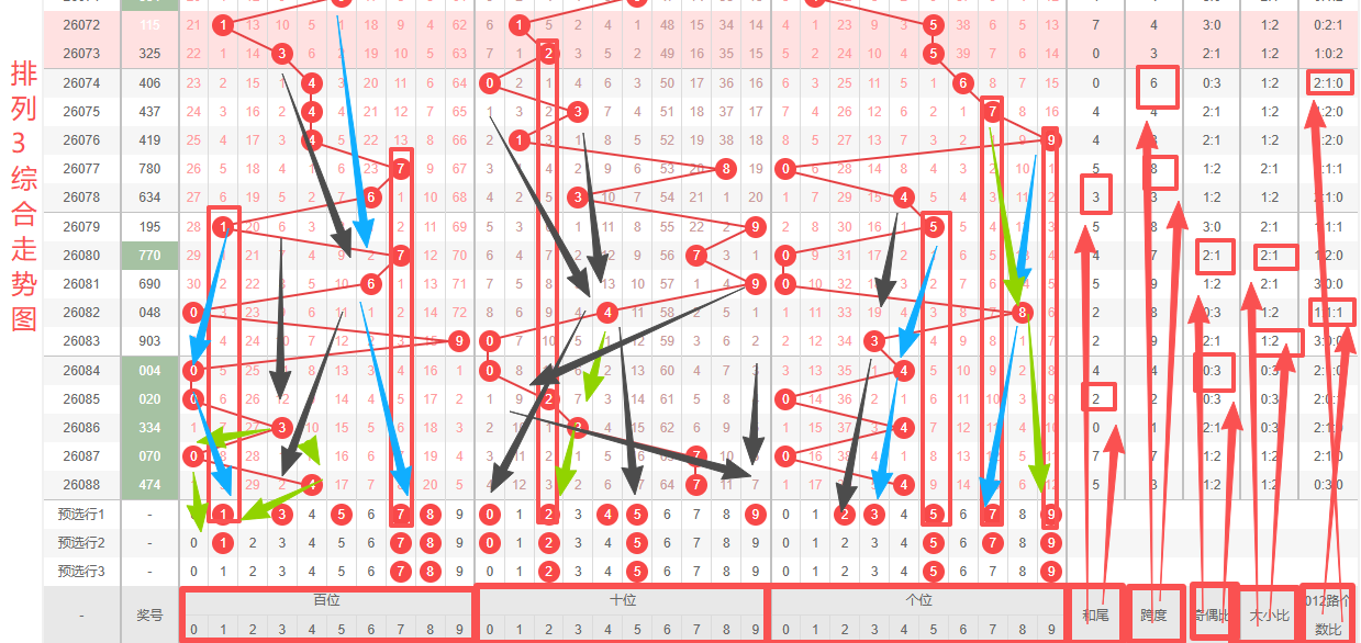 本期百位开出偶数号码【4】,近十五期百位开出号码为:【4-4-4-7-6-1-7-6-0-9-0-0-3-0-4】,开出奇偶比是:【偶偶偶奇偶奇奇偶偶奇偶偶奇偶偶】的态势,近十五期开出5:10的奇偶比,开出偶数号码,从比例看偶数占优势,奇偶比处于严重失衡之势,大小比为:【小小小大大小大大小大小小小小小】的态势,连续五期开出小号号码,大小比为5:10,小号占据优势,大小比处于严重失衡之势,百位开出跨度4,开出偶跨。