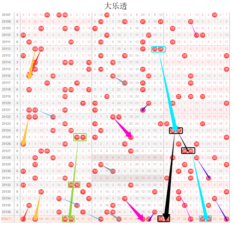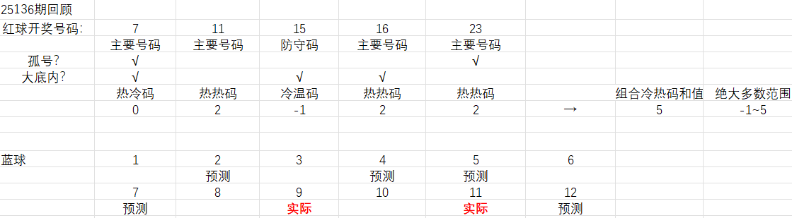 注意5个红球的组合冷温热码和值范围保持在-1~5