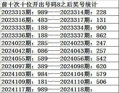 三、十位分析:上期开出号码8,前10次号码8出现之后下期同位号码为:2306454270,其中号码大小比为3:7,大号走势相对较冷;奇偶比为3:7,偶数号码走势非常活跃;012路比为4:3:3,2路号码走温。本期参考号码:8。