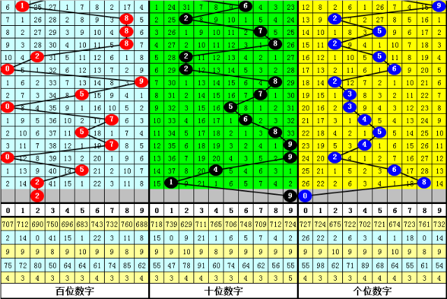 跨度、和值分析:近期跨度主要分布在2-9区域,比较分散,本期预计跨度上升,参考跨度9。和值近期波动范围较大,上期开出和值11,本期防止和值重复开出,参考和值11。