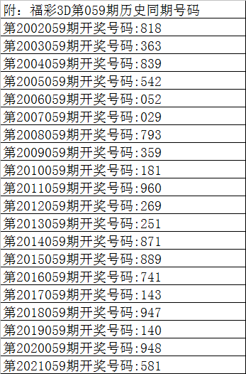 曾哥福彩3D第2022059期推荐: