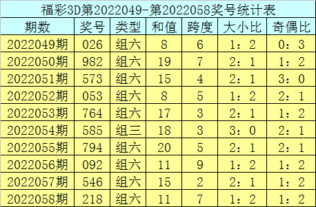 上期回顾:福利彩票3D第2022058期奖号为218。