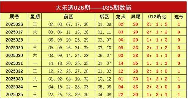 大乐透第2025035期出奖号统计:前区22、25、28、29、30,后区04、08。龙头22,凤尾30,012路比为1:3:1,开出1组连号。