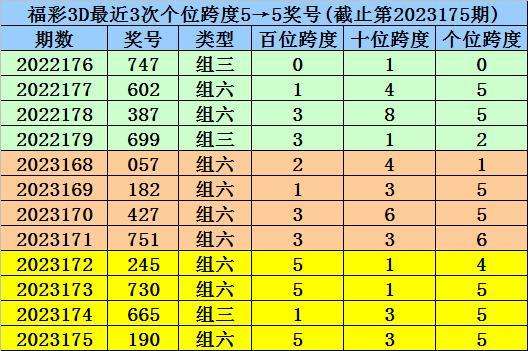 第2023172-第2023174期奖号:245、730、665,其下期奖号为:190,末位号码跨度为5;