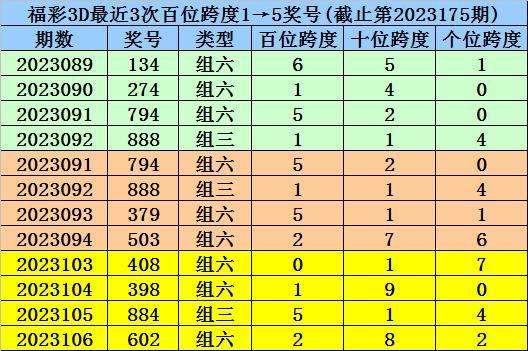 第2023103-第2023105期奖号:408、398、884,其下期奖号为:602,首位号码跨度为2;
