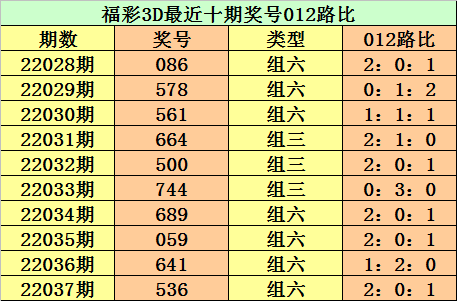 开奖回顾:福彩3D第2022037期:奖号为536,奖号质合比为2:1,大小比为2:1,跨度为3,类型为组六。