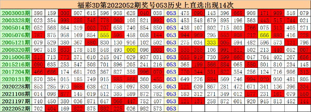 直选号码053历史上开出了14次,其下期分别开出奖号:475、453、438、944、275、535、055、365、770、649、121、183、121。