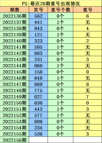 开奖回顾:福彩3D第2022155期开出奖号:536。