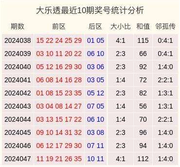 上期开奖号码的前区和值为112,大小比为4:1,邻孤传比为1:4:0。