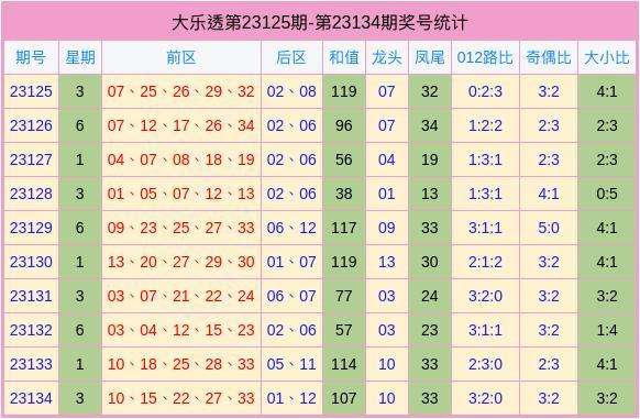 当期前区号码012路比为3:2:0,奇偶比为3:2,大小比为3:2;后区开出【奇偶】形态的号码01、12。