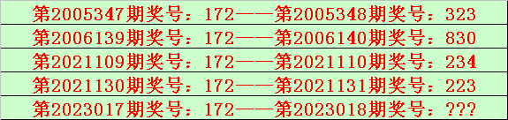 排列三第2023017期开出奖号172,该号码直选类型历史上出现了5次,前4次开出之后期下期奖号为:323、830、234、223,见下表: