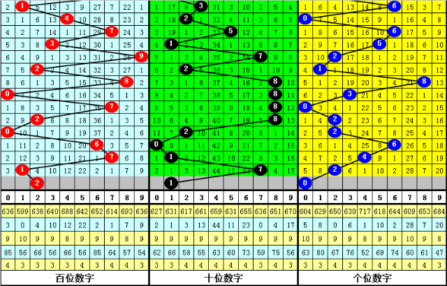 其中,百位奇偶比为1:3,大小比为1:3,本期百位一码参考2。