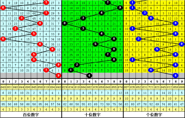 另外组选分布中,号码大小比为12:3,小号出现相对较少;号码奇偶比为7:8,奇偶号码出现比例基本持平;号码012路为3:2:10,2路号码相对活跃。且每期奖号都与最近5期奖号有相同的号码。(统计见下表)