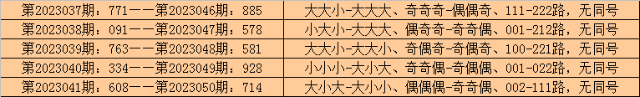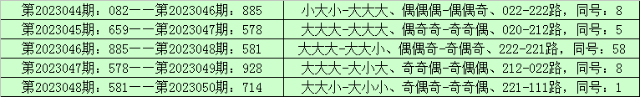 所以,排列三第2023042期奖号:231,与排列三第2023051期奖号可能没有同号。且排列三第2023051期奖号大小比、奇偶比和012路比不会与第2023042期奖号直选形态:小小小、偶奇奇和201路全部相同。