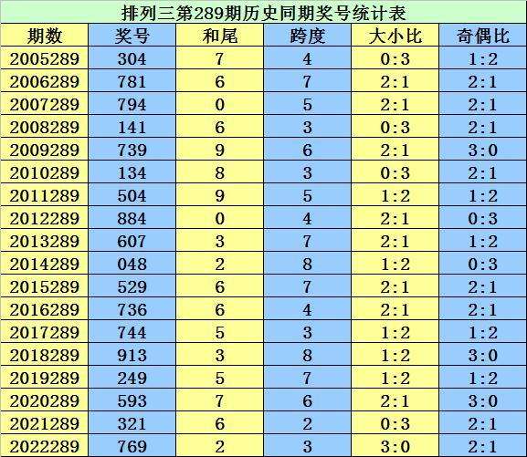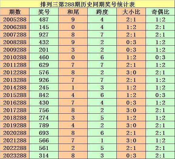 从2004年至今排列三已开出6709期奖号了,本期为排列三2023年第289期开奖,历史同期已出现18次奖号: