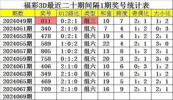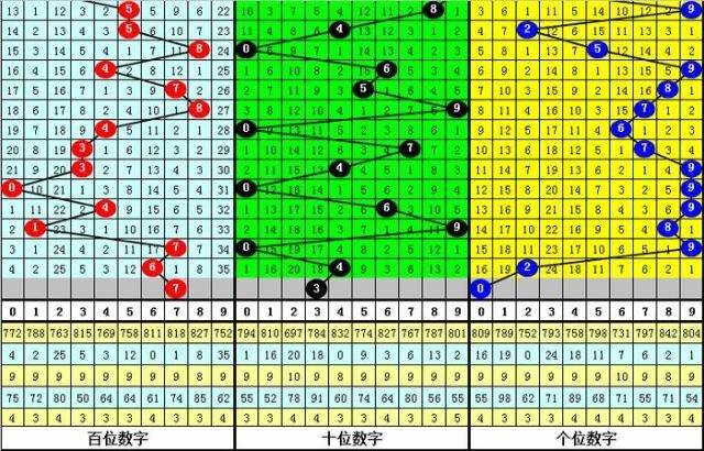 跨度分析:最近周二跨度出现范围在3-9区间,跨度比较集中,上周二跨度为4,跨度重复开出,本期看好跨度上升,参考跨度7。