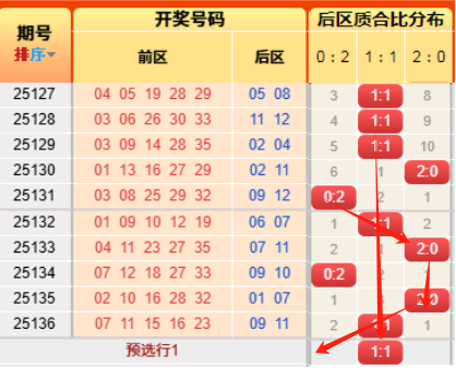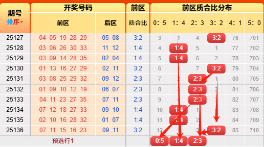 上期质合3:2,近50期命中48期范围。来看历史次数统计0:5出现269次、1:4出现906次、2:3出现1009次、3:2出现513次、4:1出现100次、5:0出现7次,再看近十期质合比出现的次数比0:4:3:3:0:0,冷值5:0暂时放弃,再结合图形来看,本期趋势看顺路,初步选择为0:5、1:4、2:3。(具体请点击本条上车查看精选质合比 )