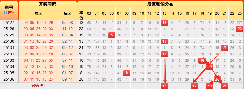 前区分析完毕,我们再来看后区小大、奇偶、质合、和值分布图: