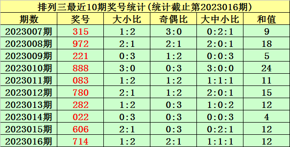 017期唐羽排列三预测奖号:大小奇偶和值分析