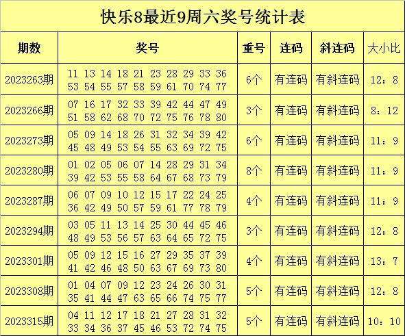 安仔最近9周六快乐8奖号分析