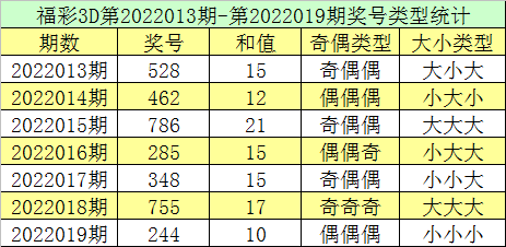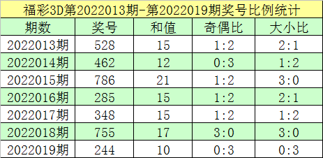 福彩3D第2022019期回顾:奖号为244,奖号奇偶比为0:3,大小比为0:3,和值为10,类型为组三。