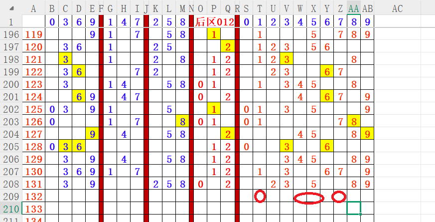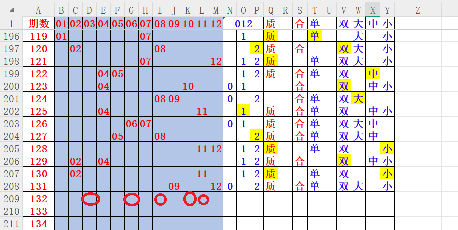 如上图4,012路分析012路,本期重点12路。重点 03 06 07 10 11