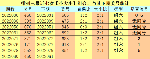 组选类型判断:排列三近期主要以组六号码为主,短期内不会改变,本期预计出现组六号码。