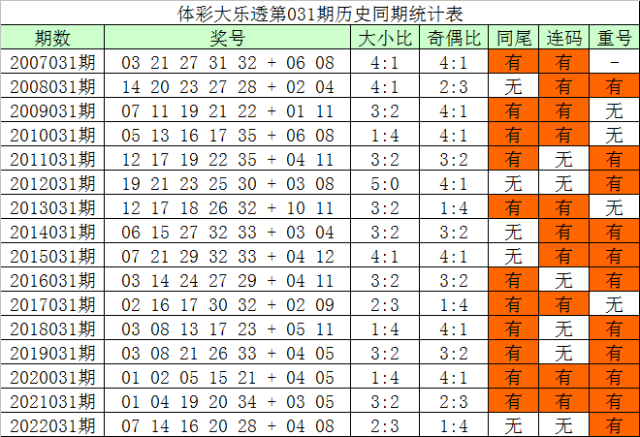 大乐透第031期历史开奖16次,奖号统计见下表: