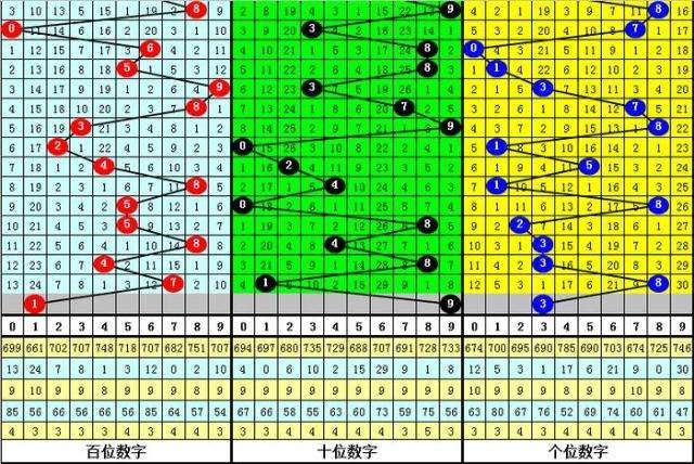 大中小分析:在组选0-9号码分布图中,前10期小 号(0-2区段)出现8枚奖号,中号(3-6区段)出现10枚奖号,大号(7-9区段)出现12枚奖号,上期中号区域没有落号,本期预计大中小区域各出1枚奖号。