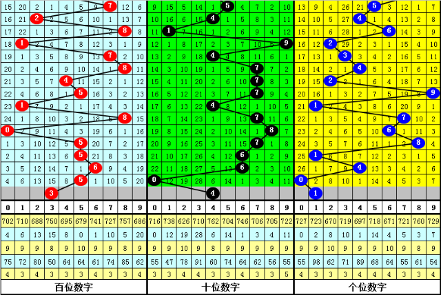 百个位合:前10期百个位两码合开出:2、6、4、2、5、6、3、6、0、5,其中百个位两码合012路比为5:1:4,奇偶比为3:7,本期参考百个位两码合开出偶数,两码合关注0、2、4。