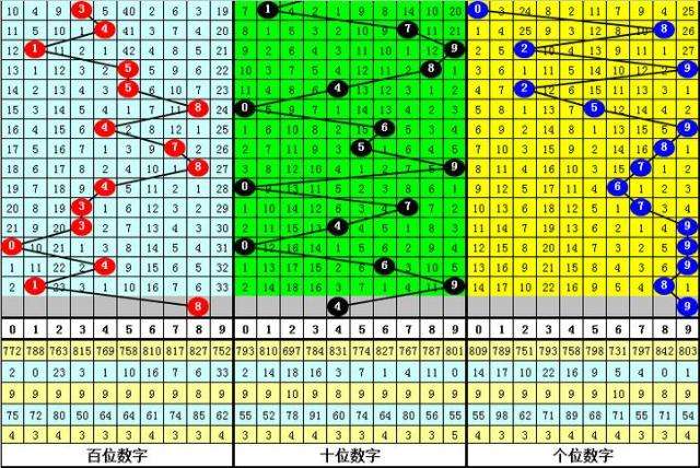 百个位合:前10期百个位两码合开出:3、3、5、5、0、0、2、9、3、9,其中百个位两码合012路比为7:0:3,奇偶比为7:3,本期看好百个位两码合开出1路号,参考两码合1、4、7。