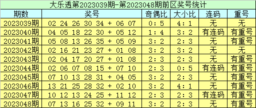 开奖回顾:体彩大乐透第23048期奖号开出:07 13 16 25 32+09 11,前区奖号奇偶比为3:2,012路比为0:4:1,大小比为2:3,没有开出连码,包含2个重号:13、25。