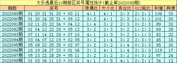 体彩大乐透第2022099期定位奖号属性分析: