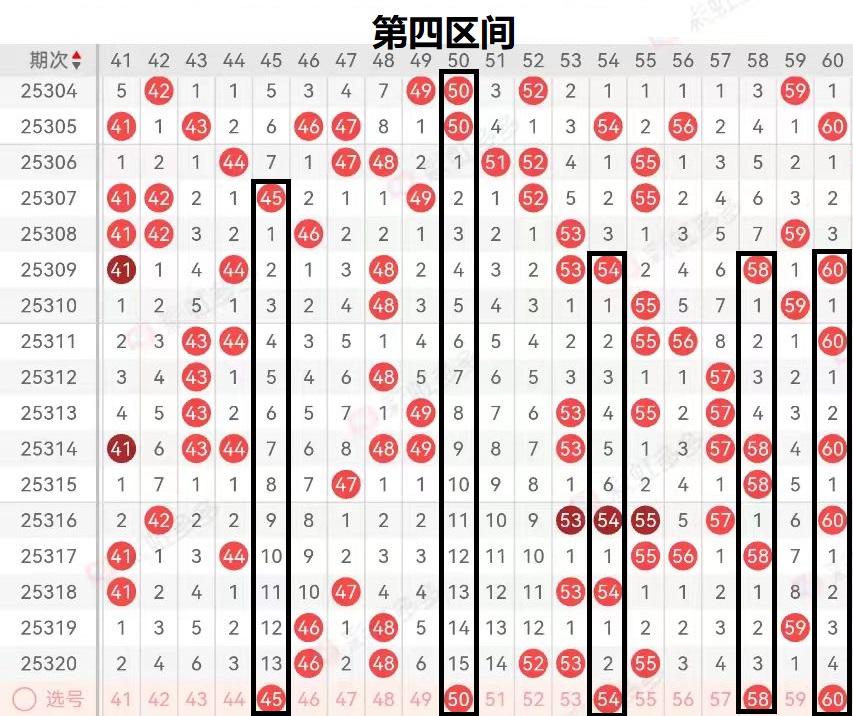 上期第三区间开出了(46 48 52 53 55)五个号码球,上期三区间开出温热态五码落位,上期三区号码落位处于区间的前后端。区间前端46-48对应号码球开出,区间中端52-53姊妹对号码球开出,那么通过对三区间的整体分析来看我认为接下来三区间号码在区间走出震荡后形成下行落号,区域会走出小范围的震荡。那么大家一定要注意区间号码的冷调整趋势,通过对三区间近期号码的分析来看号码走出温态调整的可能性最大。那么通过分析来看三区间在近期会继续出现走势分化的趋势,因此我们在对三区间进行分析后得出,未来我们要重点考虑近期回补号码球更为妥当。